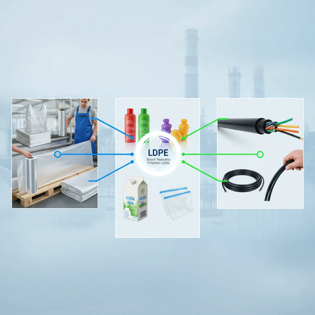 Low-Density Polyethylene (LDPE) is one of the most widely used thermoplastics in the petrochemical industry and the flexible member of the Polyethylene family. Thanks to the high degree of branching in its molecular chain structure, LDPE, as its name suggests, has a low density, which gives it excellent flexibility, transparency, and easy processability.